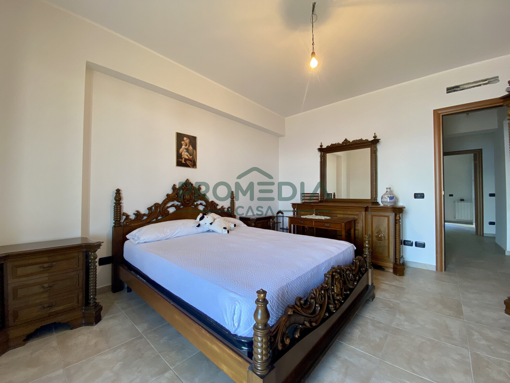 La matrimoniale ha uscita sul terrazzo, mentre la seconda camera da letto e la terza stanza, ideale da adibire uso studio, sono servite dal secondo balcone, con affaccio retrostante.
