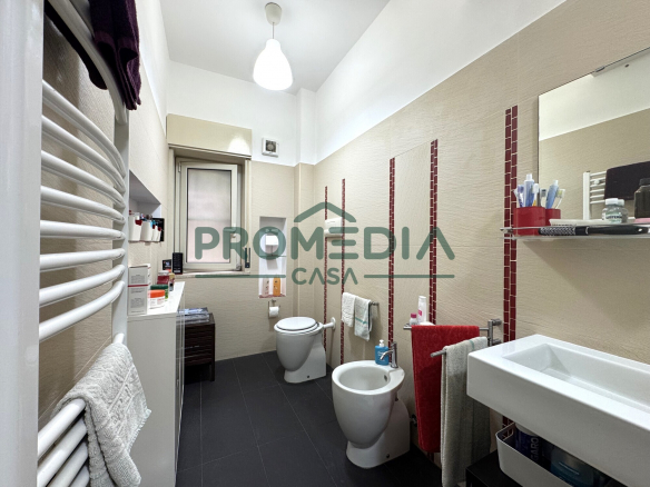 Il bagno principale è con finestra (anche a uso vasistas) e vasca. Il bagno di servizio è con finestra vasistas e box doccia, rivestito in pietra piasentina. Il bagno principale è anche dotato di aerazione forzata, nel secondo vi è la predisposizione.