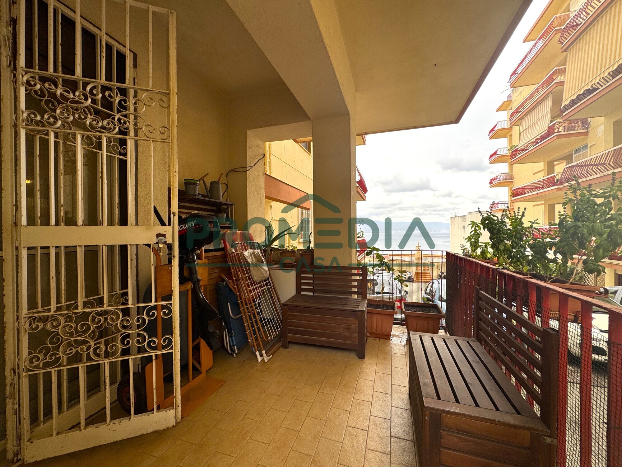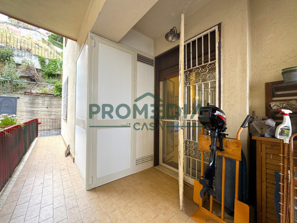 Il soggiorno ha uscita tramite porta-finestra sulla veranda, la quale gode di scorcio panoramico sullo Stretto e di ingresso tramite cancello pedonale, ideale per poter ricoverare un mezzo a due ruote o una bici.