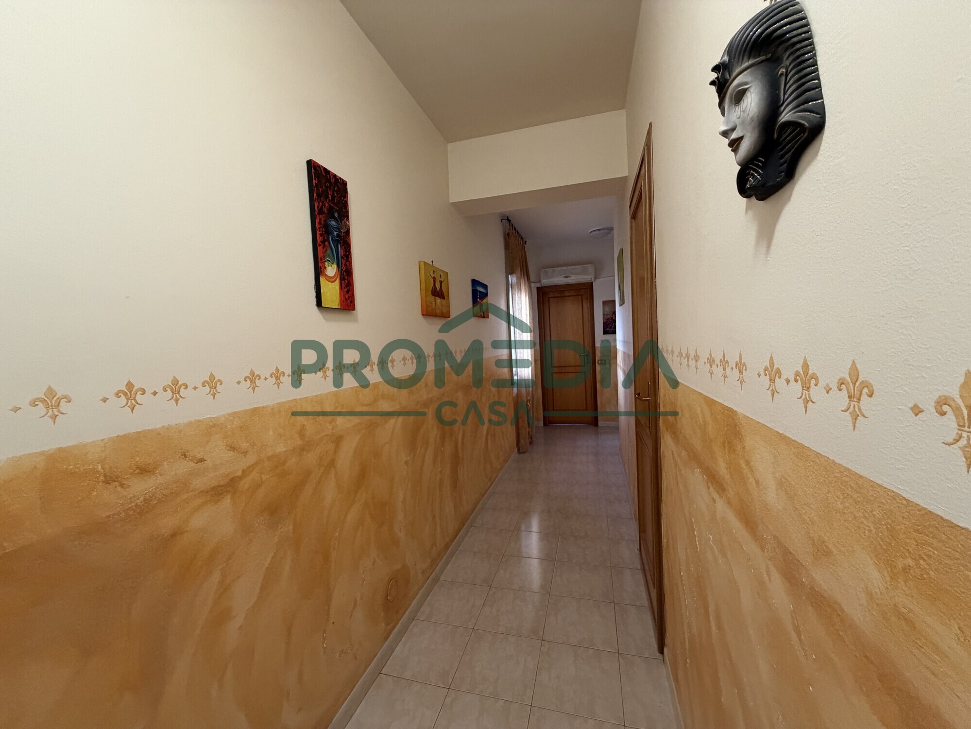 L’ingresso si apre su un comodo disimpegno che conduce alla zona giorno, composta da salone e cucina adiacenti ma ben separati, entrambi serviti da balcone, ideali per garantire luce naturale durante tutto l’arco della giornata.