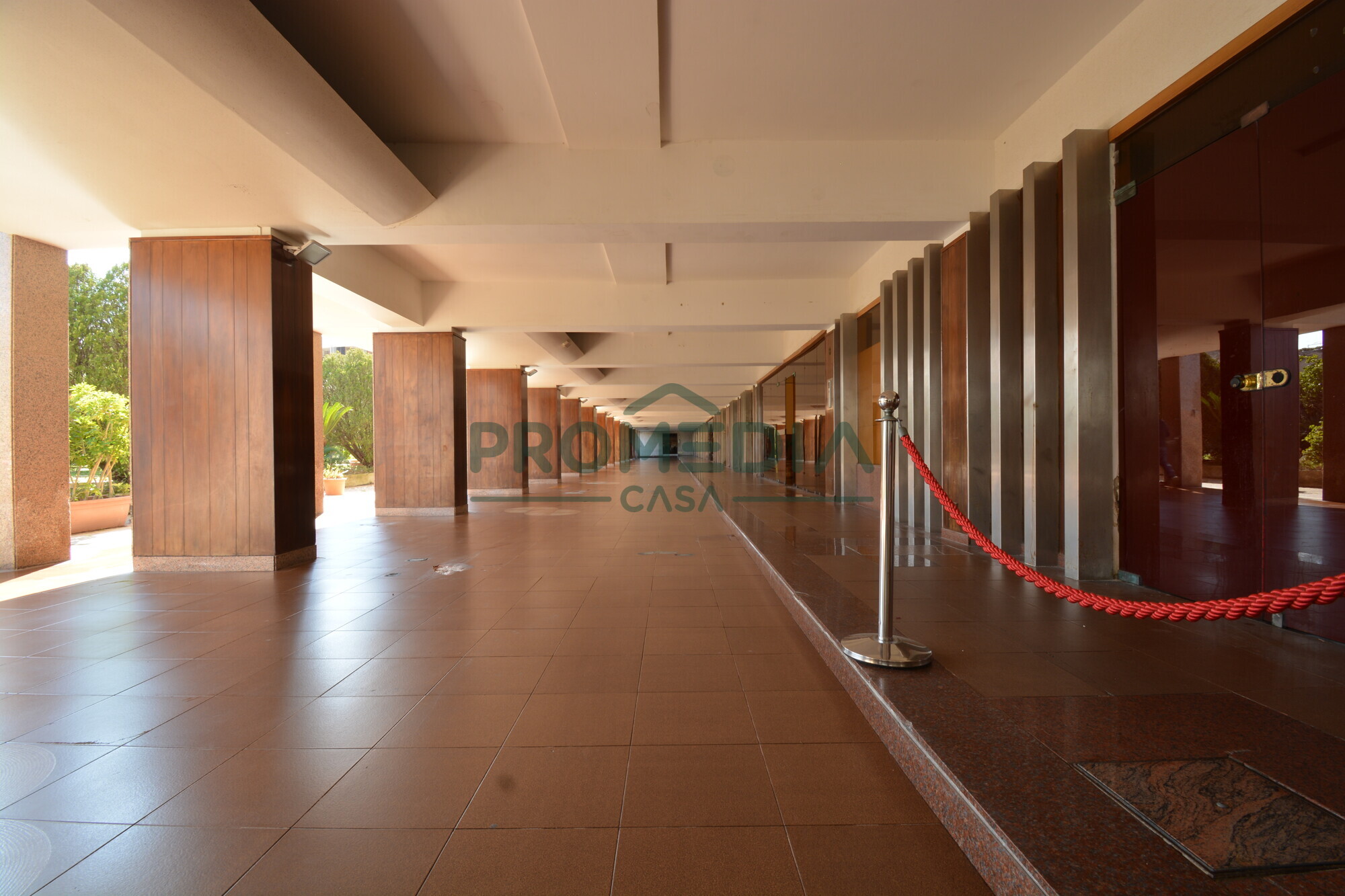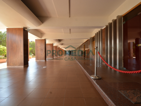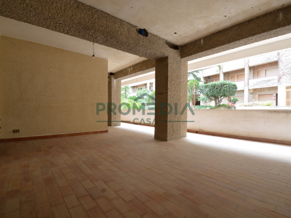 L’appartamento è situato al piano terra di una delle scale interne al complesso e si sviluppa su una superficie di circa 150 mq, con una distribuzione degli ambienti funzionale e ben definita. L’ingresso introduce in modo diretto alla zona giorno, dominata da un salone doppio di generose dimensioni, spazio centrale dell’abitazione. Da questo ambiente si accede a un terrazzo a livello di circa 50 mq, elemento distintivo della proprietà, che si affaccia sull’interno del residence.