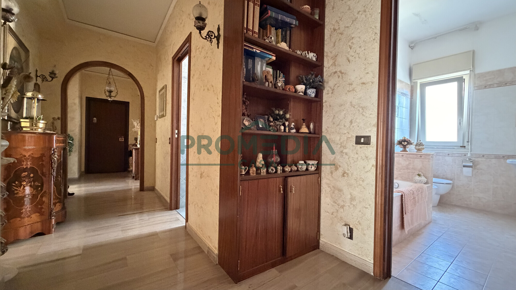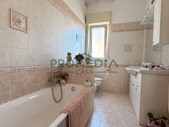 La casa è dotata di doppi servizi, entrambi finestrati, uno con box doccia e l’altro con vasca da bagno. In fondo al corridoio un funzionale ripostiglio interno.