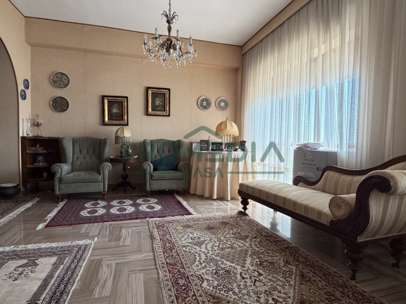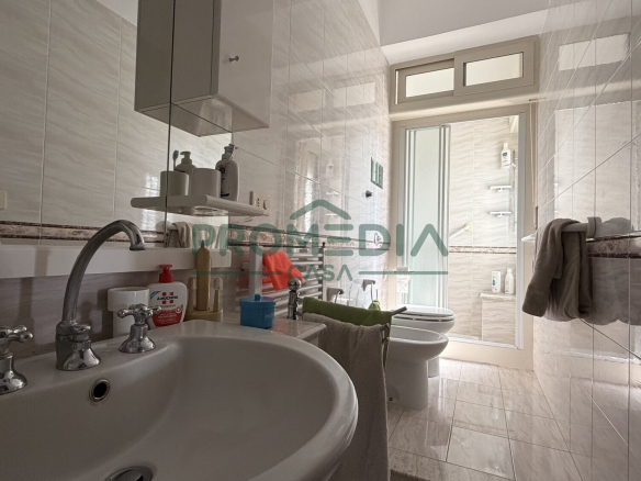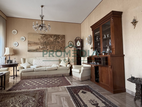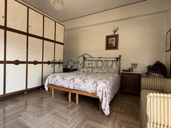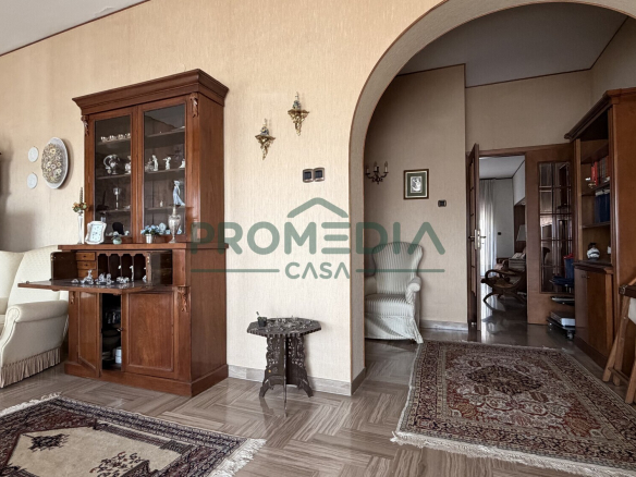 L’appartamento, posto al quinto piano di un edificio dotato di ascensore, dispone di un doppio ingresso e vanta una metratura tale da consentire un’agevole divisione in due unità distinte.