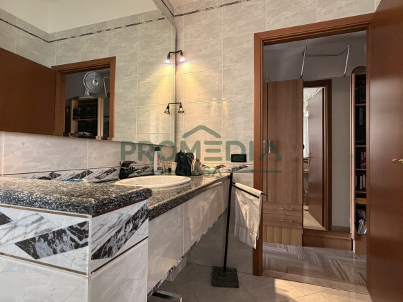 L’immobile dispone inoltre di uno studio e di due bagni finestrati, uno servito da doccia e l’altro da vasca.
