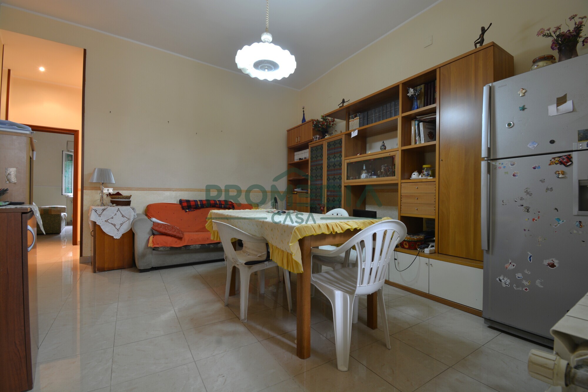Dal salone, tramite un comodo disimpegno, si accede alla cucina e all’adiacente sala da pranzo, ideali per chi ama vivere la casa nei suoi spazi quotidiani. Da qui si accede a un balcone che affaccia sul cortile interno, dove è stato ricavato anche un pratico ripostiglio esterno adibito a zona lavanderia.
