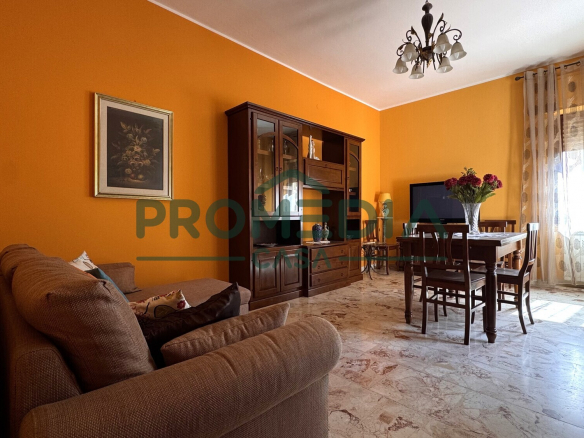 Il soggiorno è particolarmente luminoso grazie alla presenza di una finestra e di una porta finestra che affaccia su un balcone con un’esposizione aperta e ariosa sulla strada circostante.