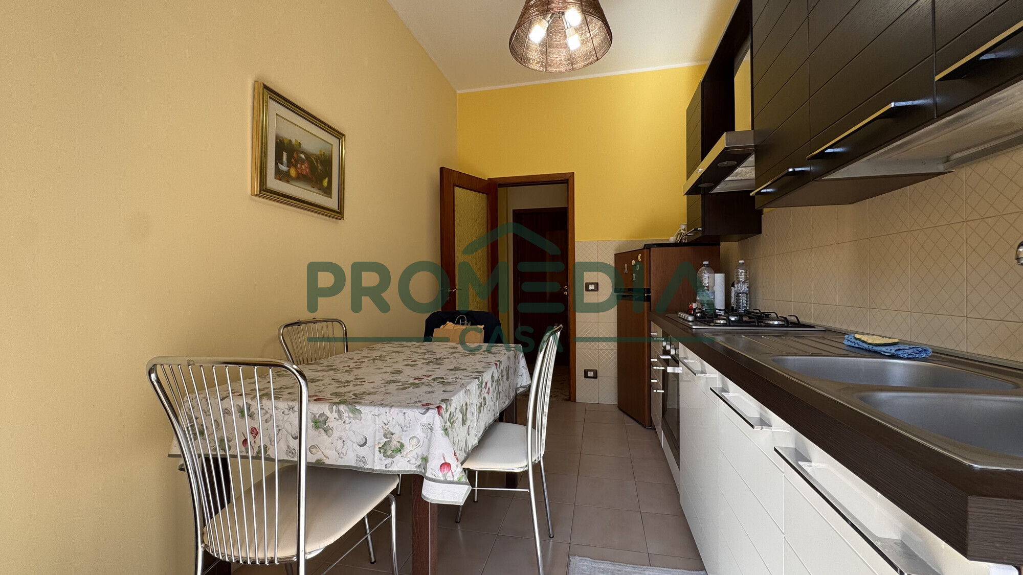 Il corridoio a ‘elle’ è provvisto di uno spazioso armadio a muro. La cucina è abitabile e dotata di un comodo balcone.
