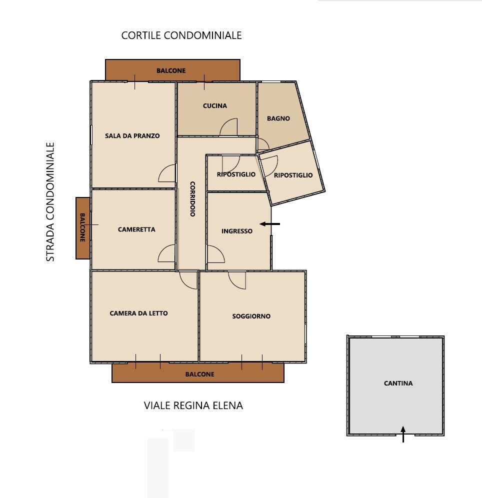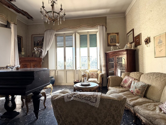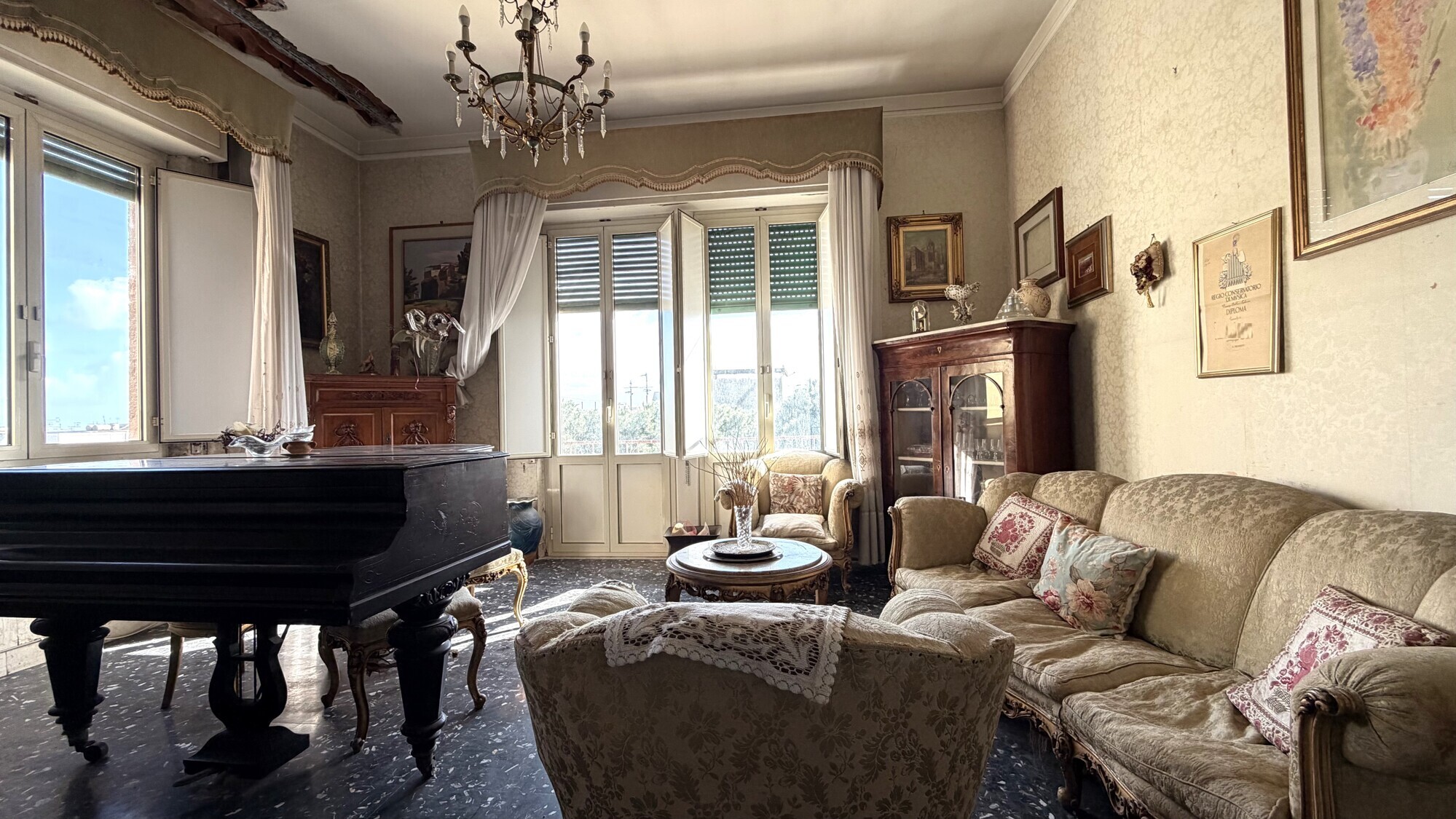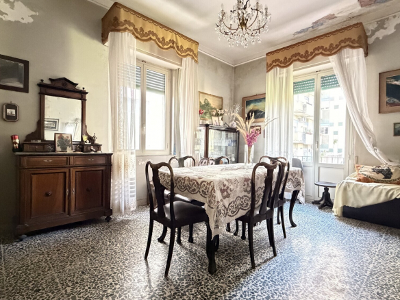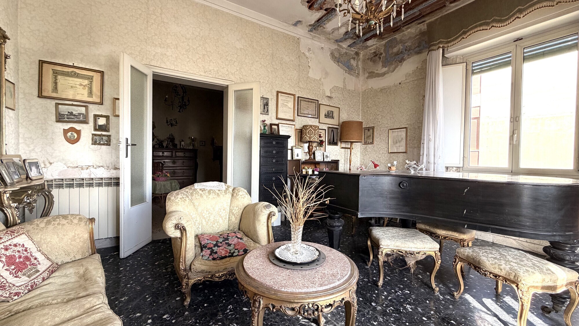L’appartamento si trova al secondo e ultimo piano di un piccolo stabile di sole due elevazioni (privo di ascensore) e gode di una bella esposizione aperta sul viale Regina Elena.